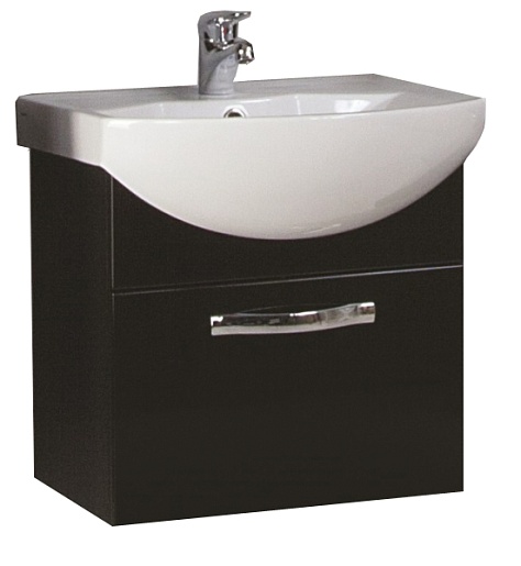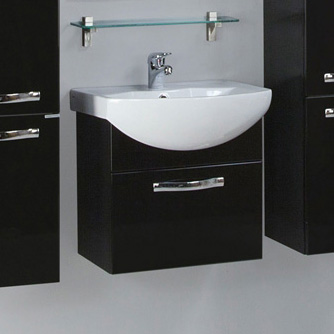 Комплектация: глубокий выдвижной ящик с системой хранения. Корпус из глянцевого ЛДСП, фасады — МДФ (глянец), хромированая фурнитура, фаянсовая раковина "Смайл 50". Усиленные навесы входят в комплект.