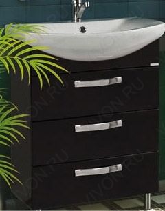 Комплектация: Ручки - 3; ящики из ВДСП «дуб молочный» - 3; шариковые направляющие; навесы - 2; ножки – 2; *раковина «Смайл» 65 арт. 1WH207782.
