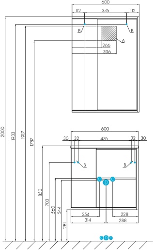 - 2 ящика, 1 дверца с механизмом открытия push-to-open.