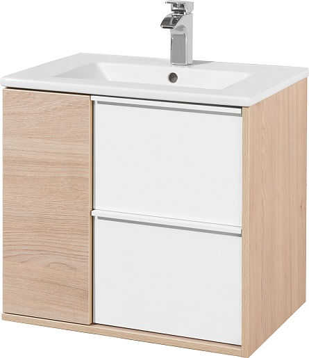 Акватон Тумба с раковиной Бостон 60 белая глянцевая, дуб эврика