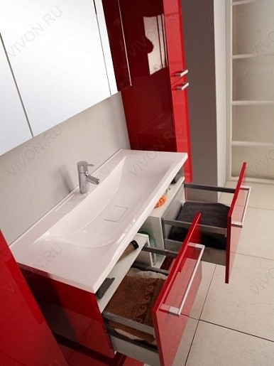 Комплектация: два выдвижных ящика с ограничительными сетками, противоскользящими ковриками и системой плавного закрывания, раковина "Премьер 1000" из литого мрамора. Корпус из ВДСП с глянцевым трехслойным покрытием, фасады из МДФ с пятислойной глянцевой покраской.