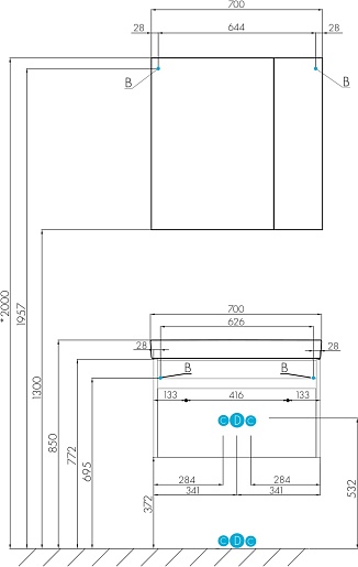 Комплектация: тумба, раковина, навесы (2 шт.).