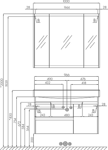 Тумба под раковину Нортон 100 белая/дуб эндгрейн