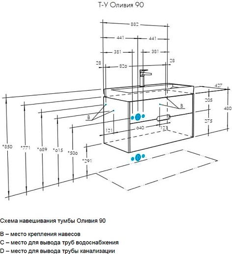Комплектация: тумба, раковина, навесы (2 шт.).