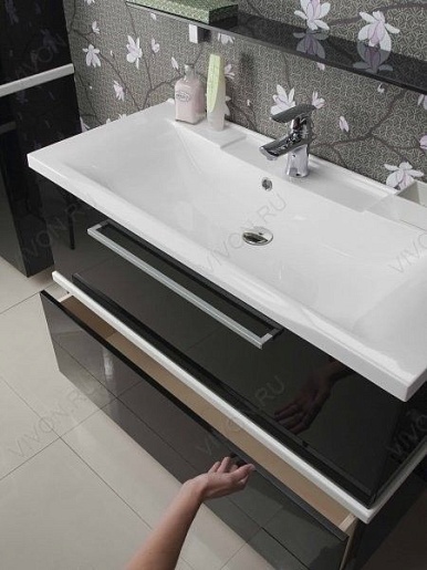 Акватон Тумба с раковиной Турин 100 с черной панелью