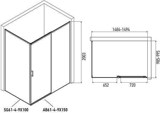 Душевая перегородка Alex Baitler AB 6 100 SG61C100 - арт. SG61C100.