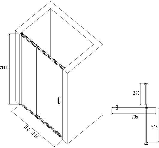 - Пристенный профиль регулируется по ширине на 100 мм (общая ширина 980-1080 мм).