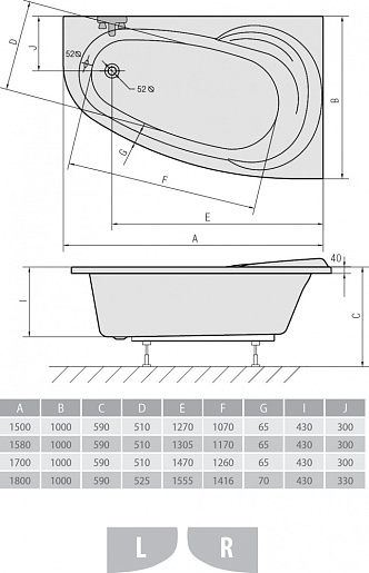 Акриловая ванна Alpen Naos 180x100 R - арт. 47111.