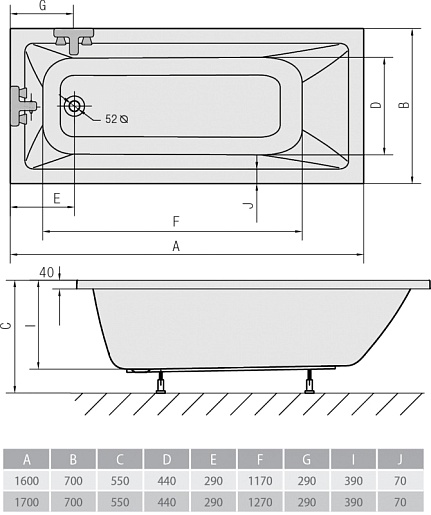 Акриловая ванна Alpen Noemi 160x70 - арт. 71707.