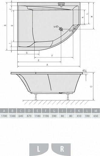Акриловая ванна Alpen Tandem 170x130 R - арт. 07611.