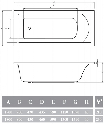 Акриловая ванна " VENERA 170х75" - арт. AVP0035