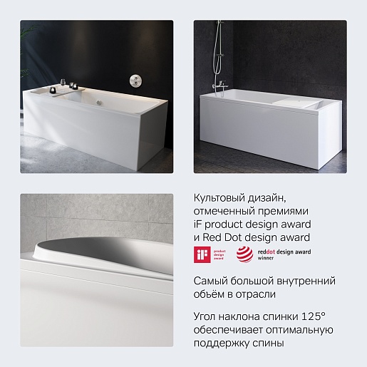 Особенно удобная деталь: филигранно очерченная полка, встроенная в борт ванны, которая позволит держать ваши косметические средства всегда под рукой.