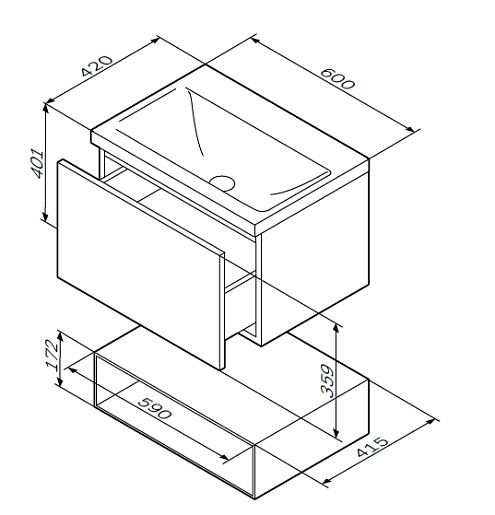 - M90FHX06021WG GEM, База под раковину, подвесная, 60 см, 1 ящик push-to-open, цвет: белый, глянец