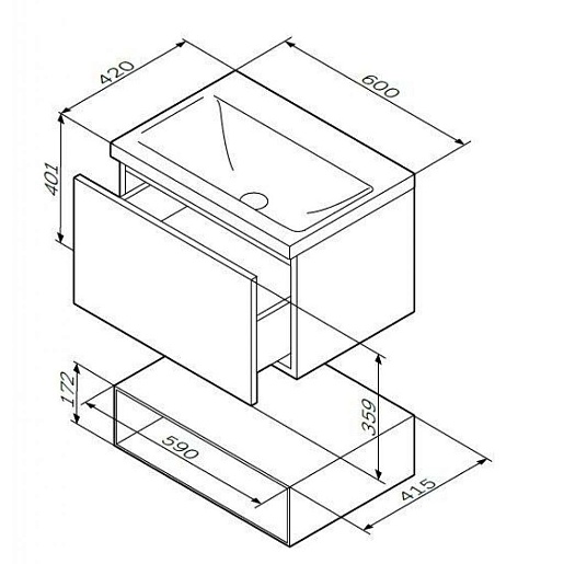 Тумба под раковину Gem 60 орех, с 1 ящиком