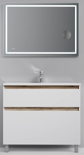 - M91AMOX1003WG Gem, зеркало с контурной LED-подсветкой, встроенными часами и линзой, 100 см