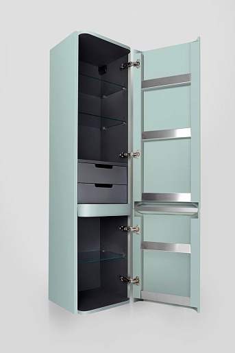 Описание: верхнее отделение - 3 полки и 2 ящика с доводчиками, нижнее отделение - 1 полка.