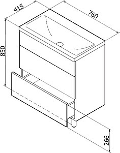 Am.Pm Тумба под раковину Gem 75 глубокий синий, напольная, с 2 ящиками