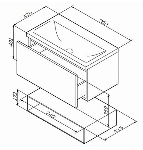 Тумба под раковину Gem 75 глубокий синий, с 1 ящиком