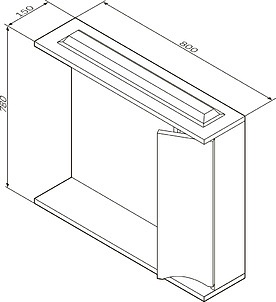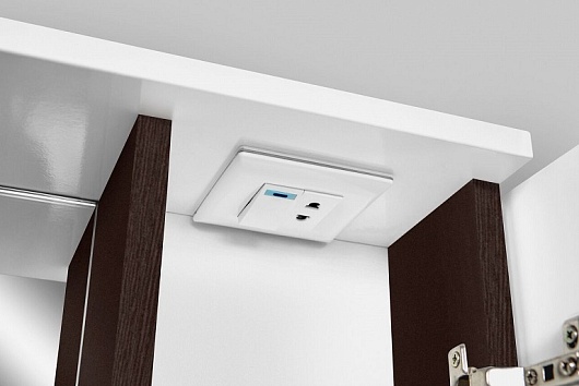 Описание: влагостойкое зеркальное полотно, шкафчик, полочка, розетка, доводчики, подсветка.