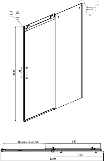 - Тип: душевое ограждение (дверь в нишу с боковой стенкой).