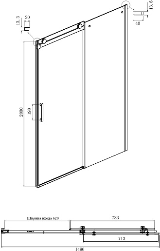 - Дверь: одна раздвижная дверь, одно неподвижное стекло.