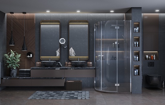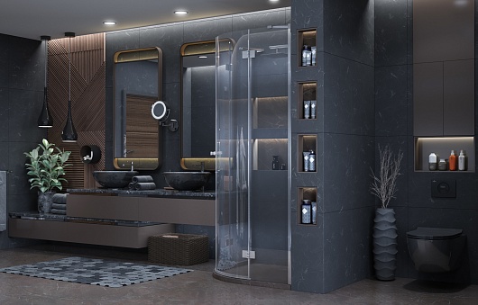- полукруглое душевое ограждение с распашными наружу дверьми