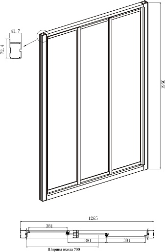 - Дверь: две раздвижные двери, одно неподвижное стекло.