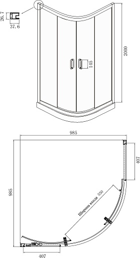 - Профиль: анодированный алюминиевый, черный.