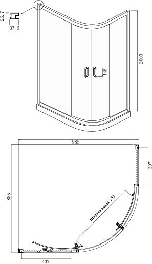 Душевой уголок Ambassador Kingston 100x90 14011207.