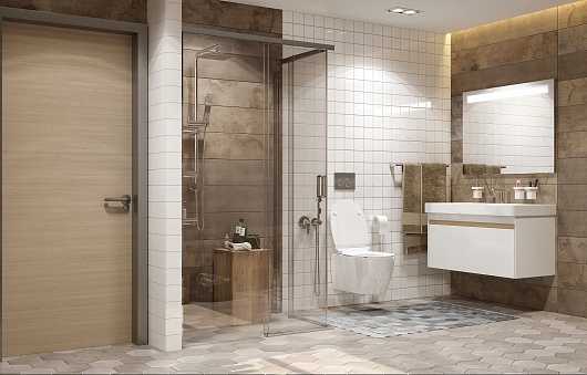 - прямоугольное душевое ограждение с раздвижными дверьми
