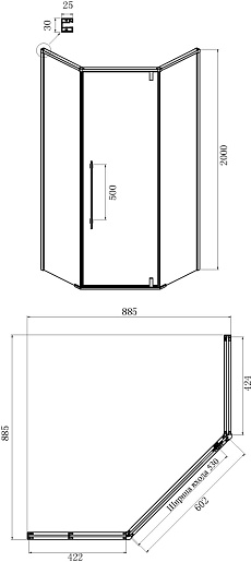 - Размер: 900x900x2000 мм.