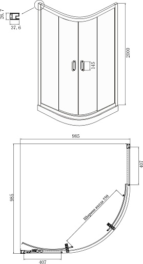 - Размер: 1000x1000x2000 мм.