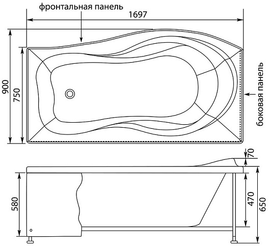 - Экран для ванны приобретается отдельно