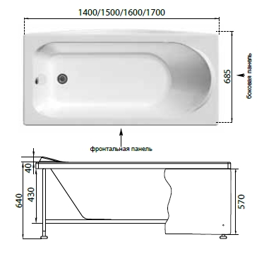 - Экран для ванны приобретается отдельно