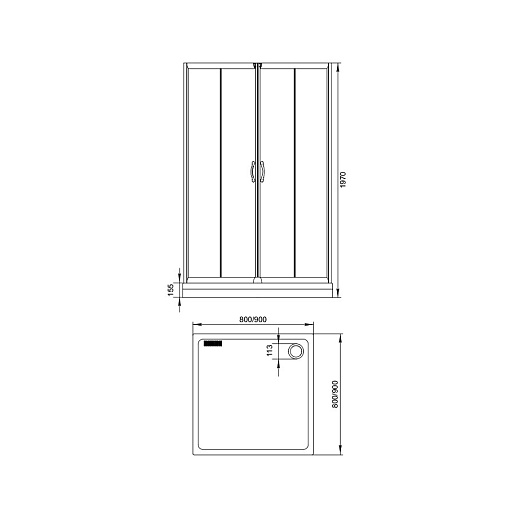 - AQ8 Душевая шторка, квадрат: 800х800х1850 мм, узорчатое стекло, 4 мм