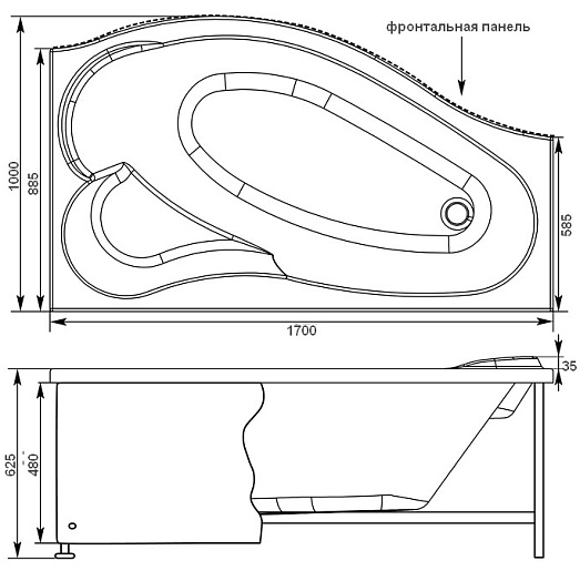 - Подходит для акриловой ванны Aquanet Palma R