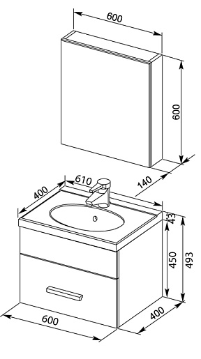 Комплектация: зеркальный шкафчик. Светильник приобретается отдельно.