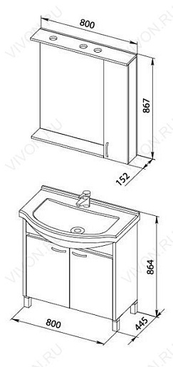 Размеры ШxГxВ: 800x166x870 мм
