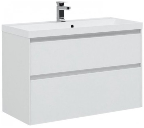 - Тумба: Aquanet Гласс 100, цвет белый, ящики цвета Дуб сонома, 2 выдвижных ящика (235664)