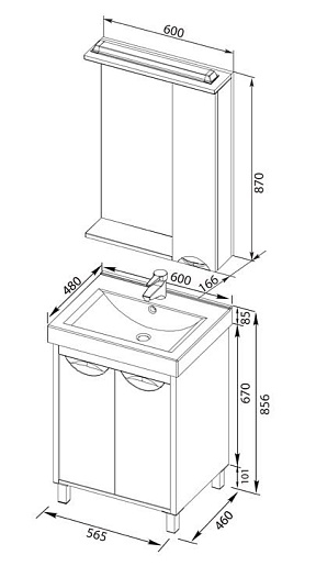 - Размеры ШxГxВ: 600x166x870 мм