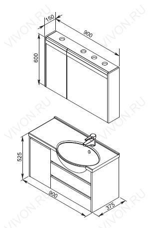 Комплектация: Тумба с раковиной (литьевой мрамор), навесы, ручки.
