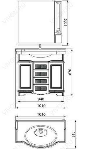 Размеры ШxГxВ: 1010x510x876 мм*