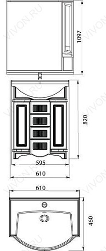 Комплектация: Тумба с раковиной (санфаянс), ножки, ручки.