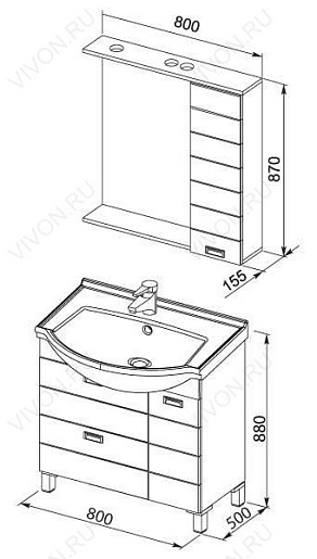 Комплектация: Тумба с раковиной (фаянс), ножки, ручки.
