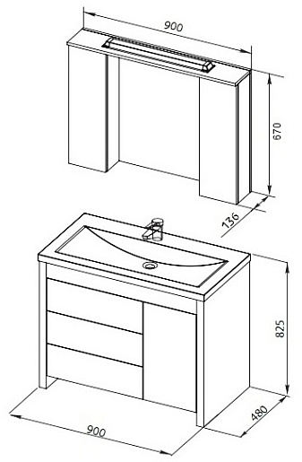 - Комплектация: Тумба с раковиной (фаянс) 177118, ножки, ручки, корзина для белья.