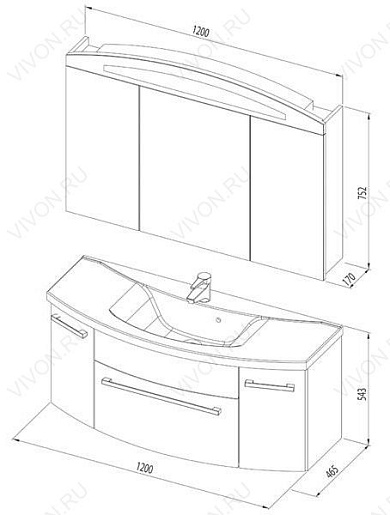 Комплектация: Тумба с раковиной (фаянс), ножки, ручки.
