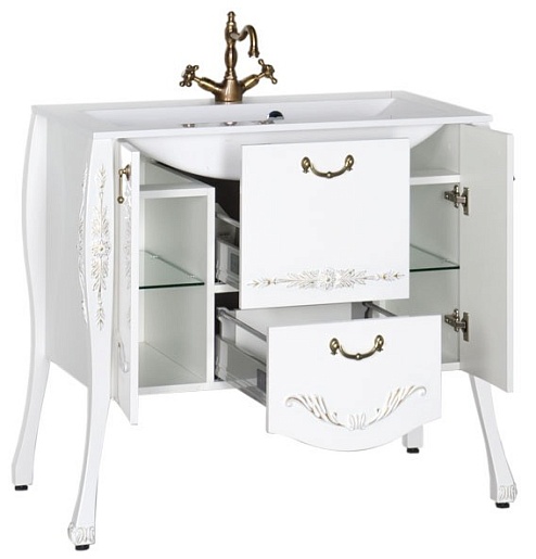 - Тумба: Aquanet Виктория 90, цвет белый глянец/золото, 2 распашные дверцы, 2 выдвижных ящика (183931)