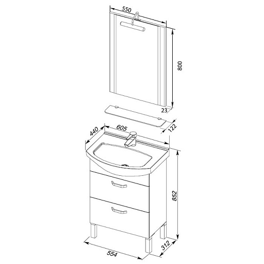 - Тумба: Aquanet Алькона 60, цвет белый, 2 выдвижных ящика (183309)