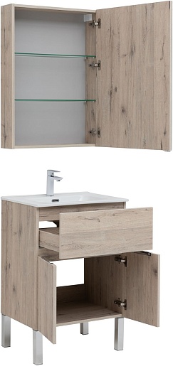 Комплектация: тумба, зеркальный шкаф, раковина, комплект креплений.