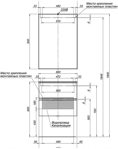 - Материал корпуса/фасада: ЛДСП / МДФ, зеркало.